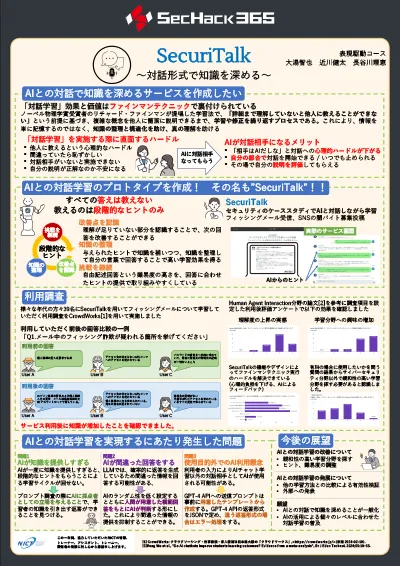 「AIとの対話で知識を深めるサービスを作成する」が私たちの出発点です。SecuriTalkでは、身近なセキュリティの脅威を題材にしました。しかし、学習分野はそれに留まらないと考えています。
