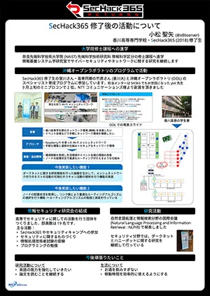SecHack365 Returns2019に参加した修了生たちの一部のポスターを公開しています。