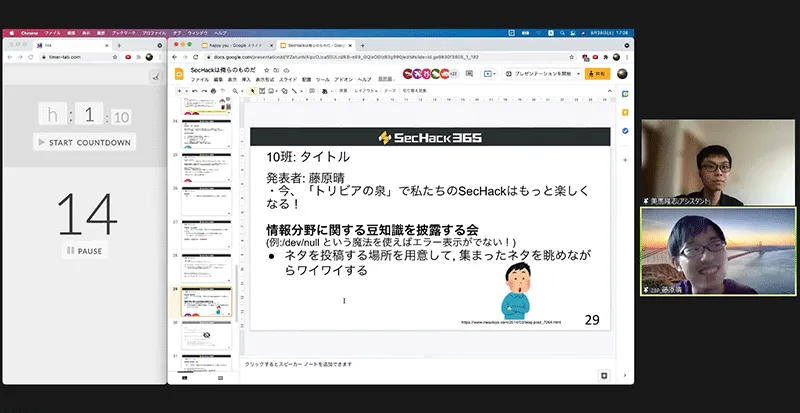 8月21日と28日にSecHack365 2021 第3回イベントデイが開催されました。本イベントデイのメインプログラムは「小さな発表会」です。
