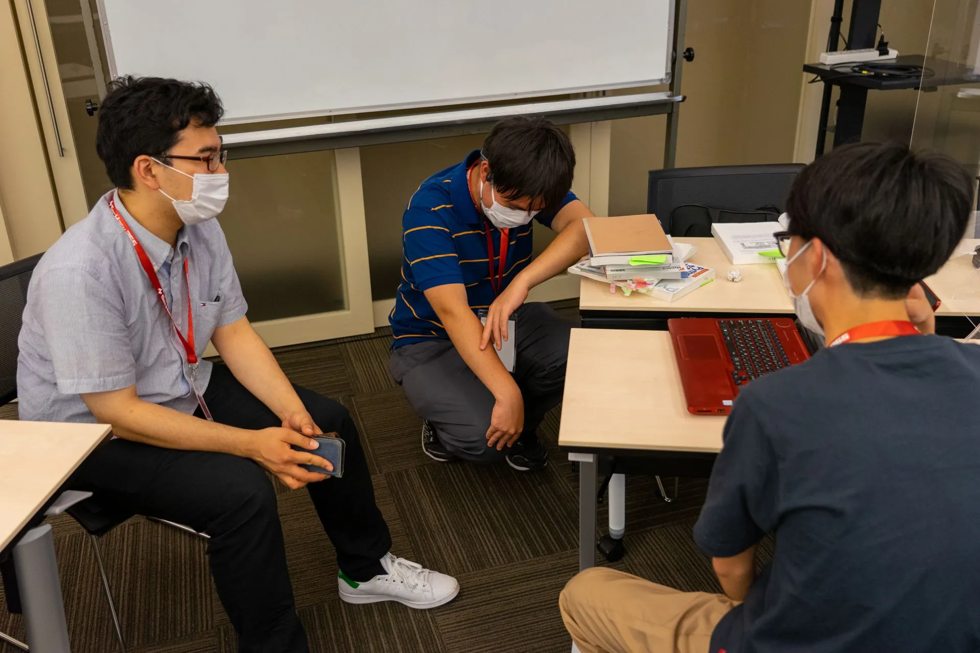 今年度はじめてのリアルに対面した1on1で、これまでオンライン越しでしか会話していなかった影響か、最初の方は相手の目を見て対話するよりも、手元のPC画面などが気になっていたようでした。途中からは集合イベントだからこそできることを意識した対話ができるようになり、言葉だけではなく、表情、身振り手振り、自然と前のめりになるような対話への没入感等、リアルな1on1の魅力を存分に味わえていたようでした。
