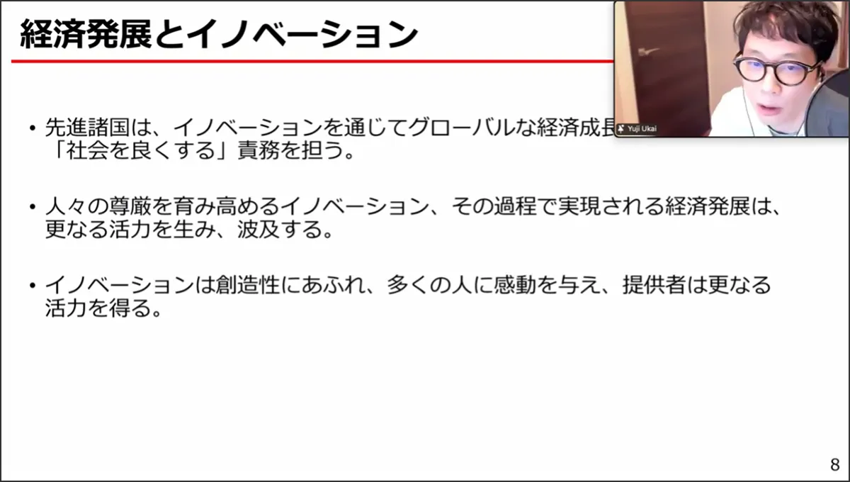 講演の中で特に印象的だったのは、「お金を稼ぐことへの意識」についての議論でした。トレーニーの中には、金銭的な報酬を得ることに対して抵抗を感じるという意見もありました。しかし、鵜飼氏は「お金を稼ぐことは、社会で価値を生み出し、それを維持していく上で切り離せないものだ」と強調します。