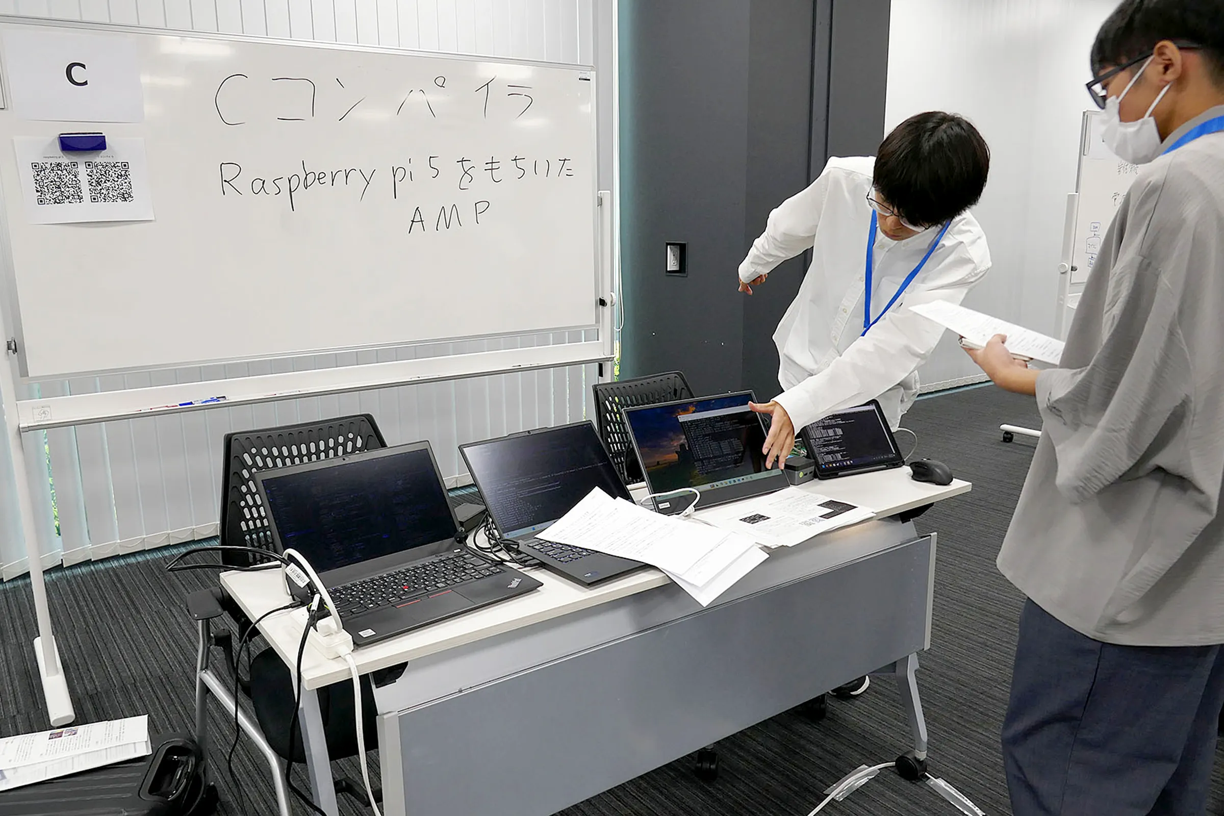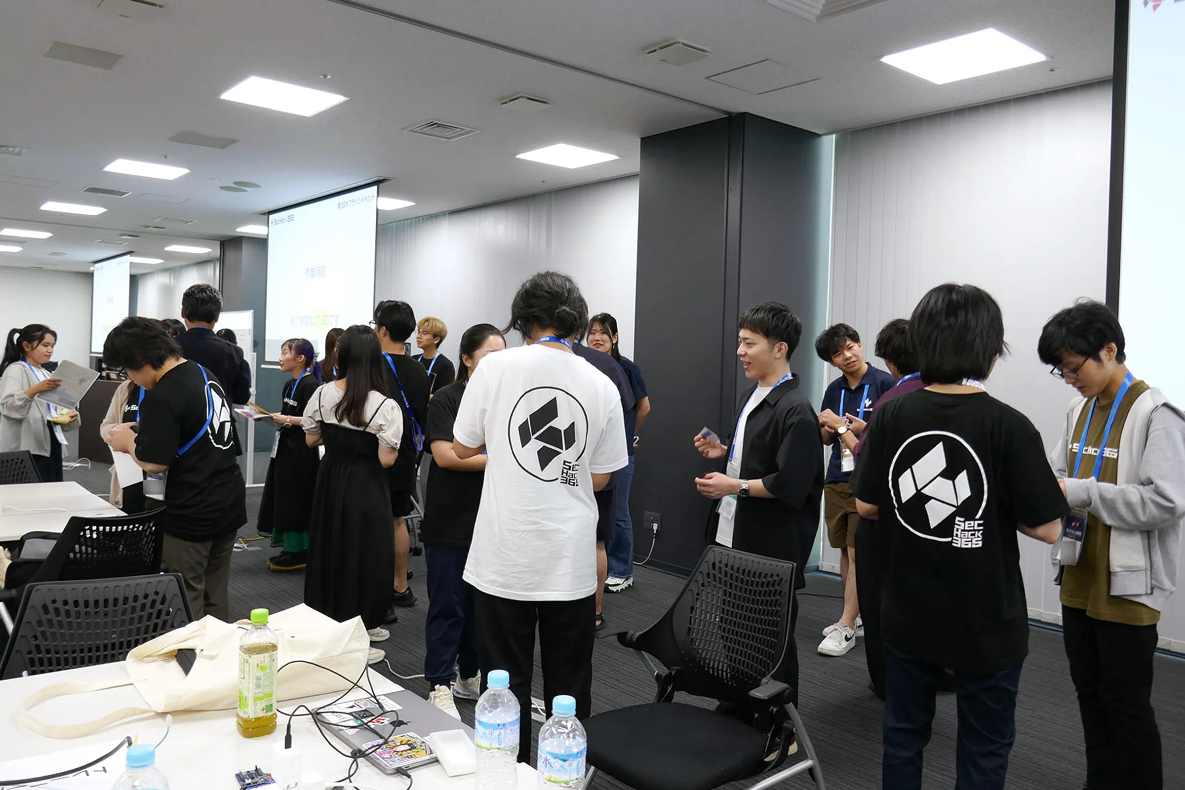 休憩の間の話題もSecHack365ならではでした。特に、低レイヤに興味を持つトレーニーの間ではmain関数の扱いや割り込み処理とロックの関係、あるいはLinuxコンテナといった話題で盛り上がっていたようです。エレベーターに乗ったら乗ったで、RustやGoに関する会話が耳に入ってくるような状況でした。