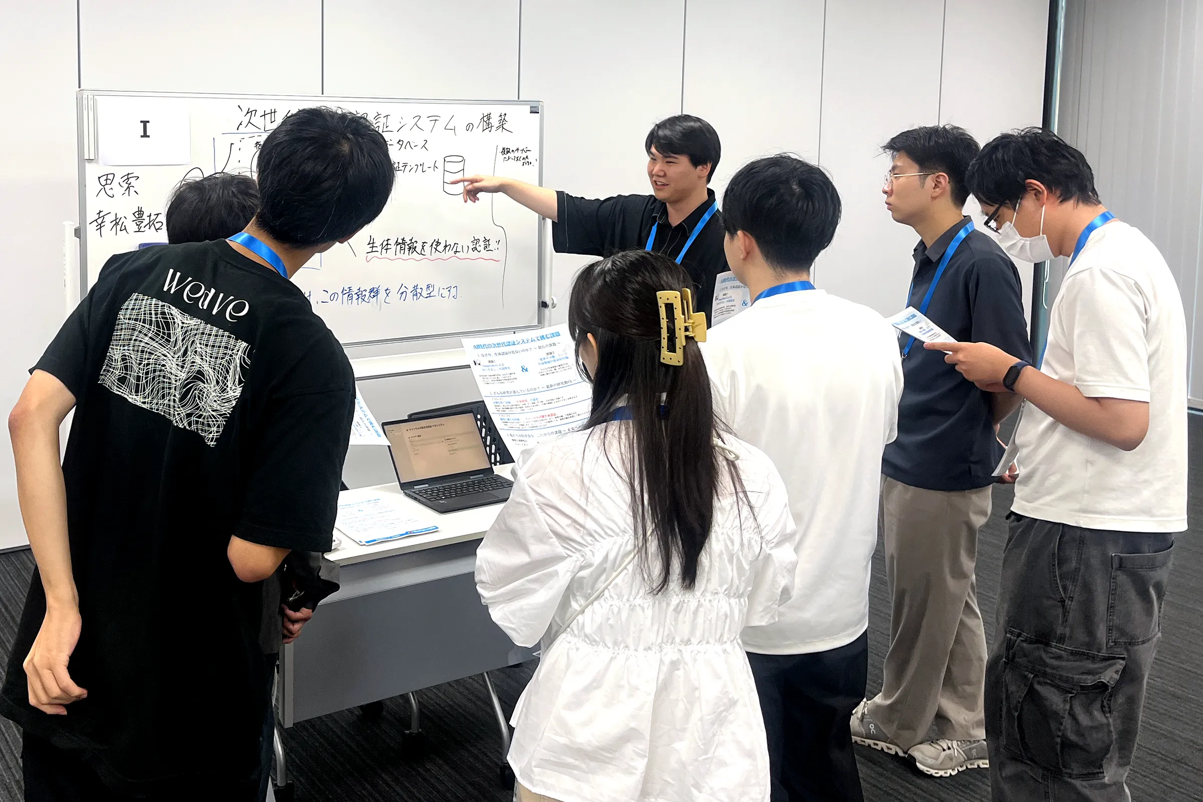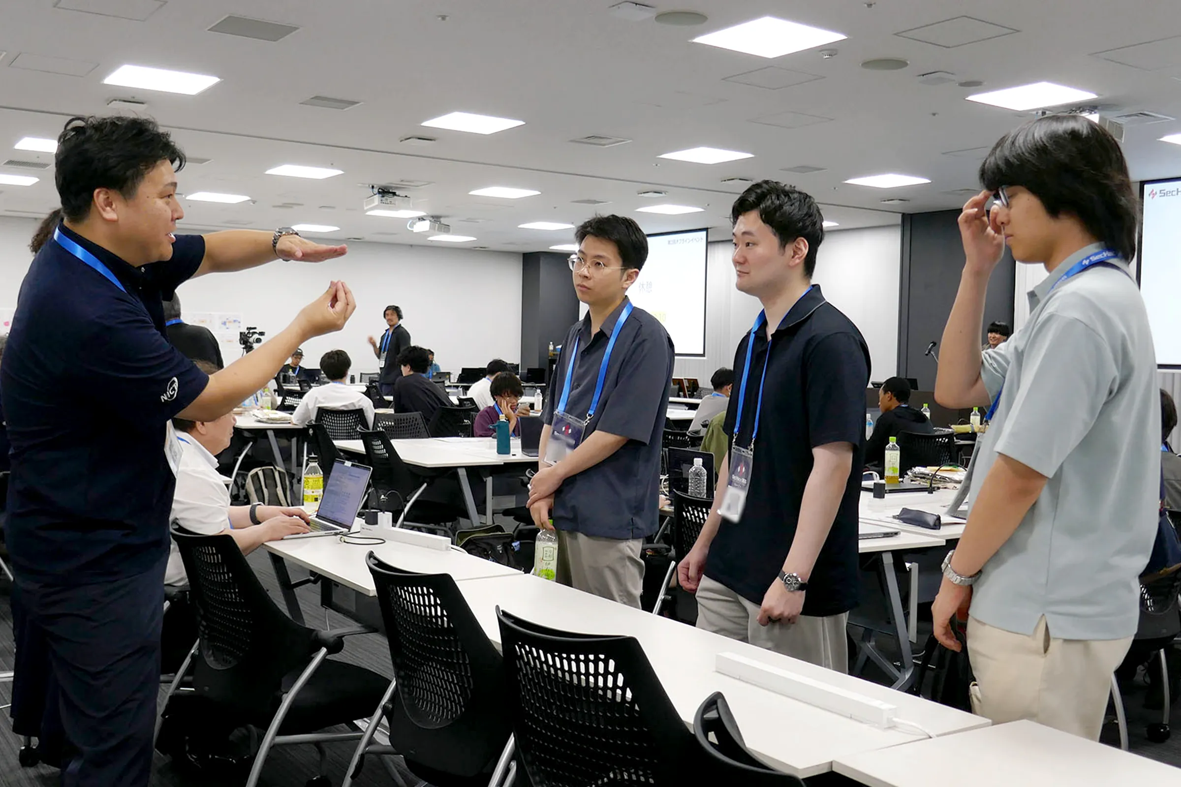 なお、笠間氏が5Gのセキュリティ検証基盤やウェアラブルデバイスでの脈拍データ偽造にまつわる研究を紹介したことから、講演後には早速関連するテーマを考えているトレーニーが飛んでいき、詳しく質問する場面もありました。