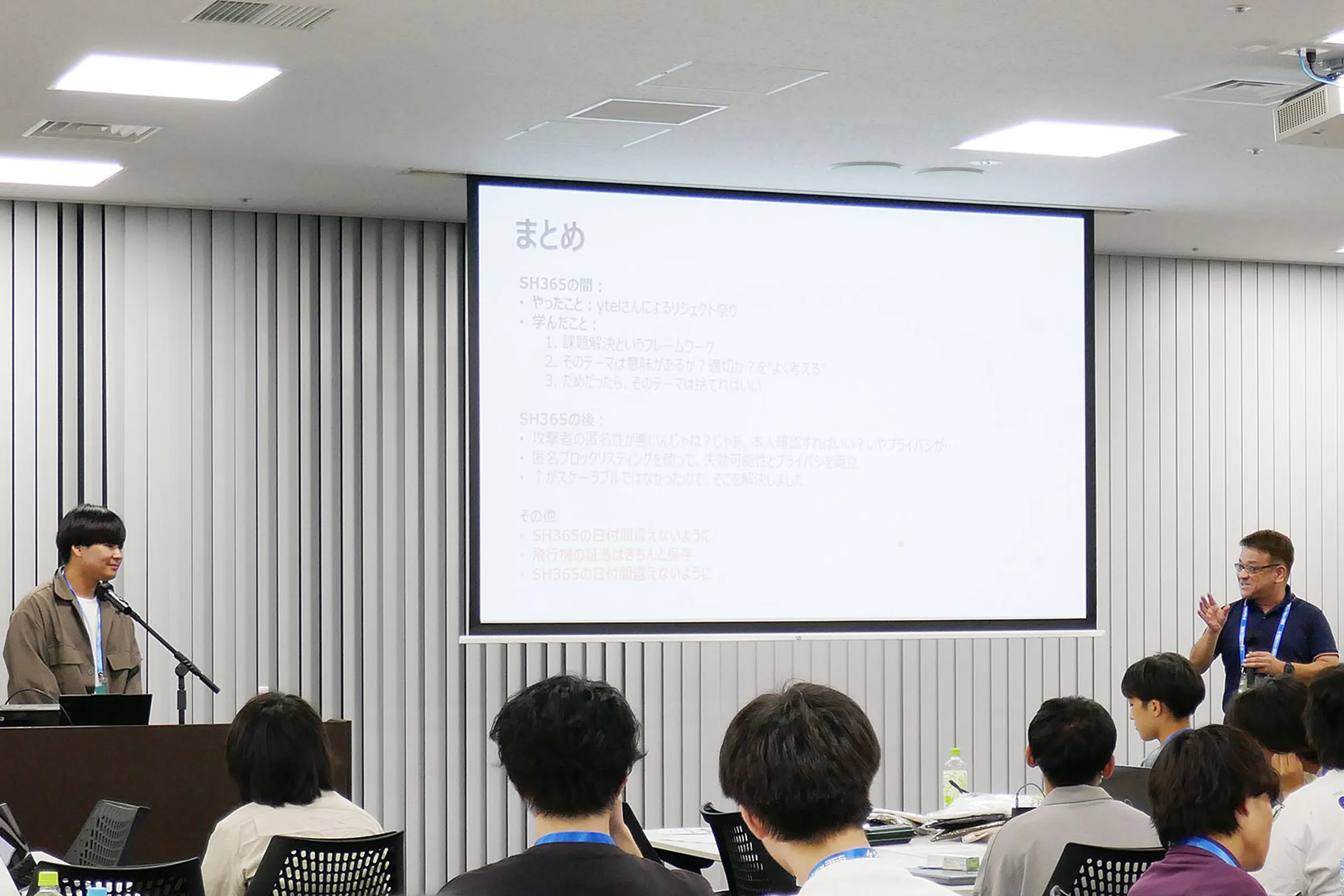 横山トレーナーは「だから一緒にやるんです。互いに意見を言い、言われましょう」と語り、何度も試し、社会にノックし続けて欲しいと呼び掛けました。これこそ、学校でも習わないSecHack365ならではのやり方と言えるでしょう。