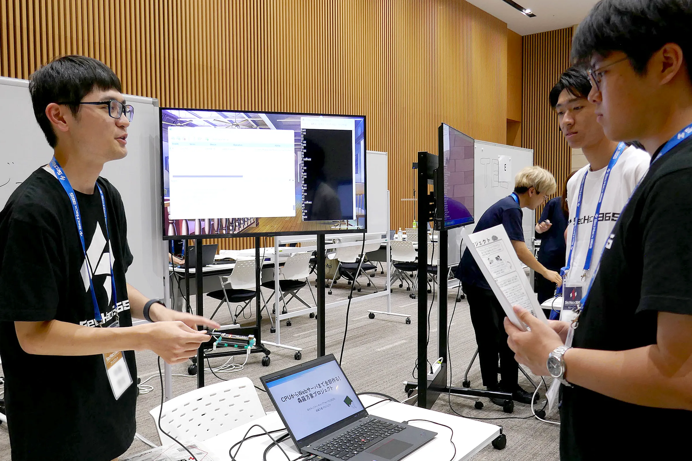 自らもトレーニーとして作品を作り、発表を経験してきたアシスタントたちは特に、より近くで見守る立場から、どのプロセスにどの程度時間をかけ、どこまで支援すればよりSecHack365の取り組みを掘り下げていけるのか、そしてどんな環境を用意すればより作品の内容が伝わりる発表になるのかといった事柄について真剣に悩み、イベント終了後も熱心に意見交換していたことが印象的です。