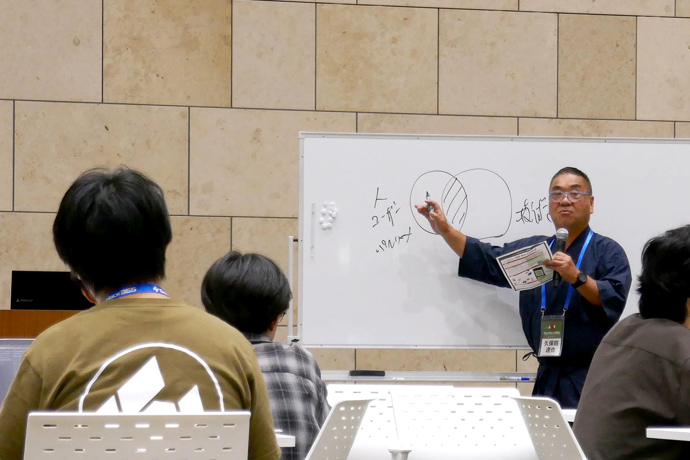 園田道夫トレーナーによると、SecHack365ではこうした人々が交わる「雑談」の仕掛けを意識して用意しているということです。「休憩中、あるいは食事中の雑談からいろんなことが生まれてくるんです」(園田トレーナー)